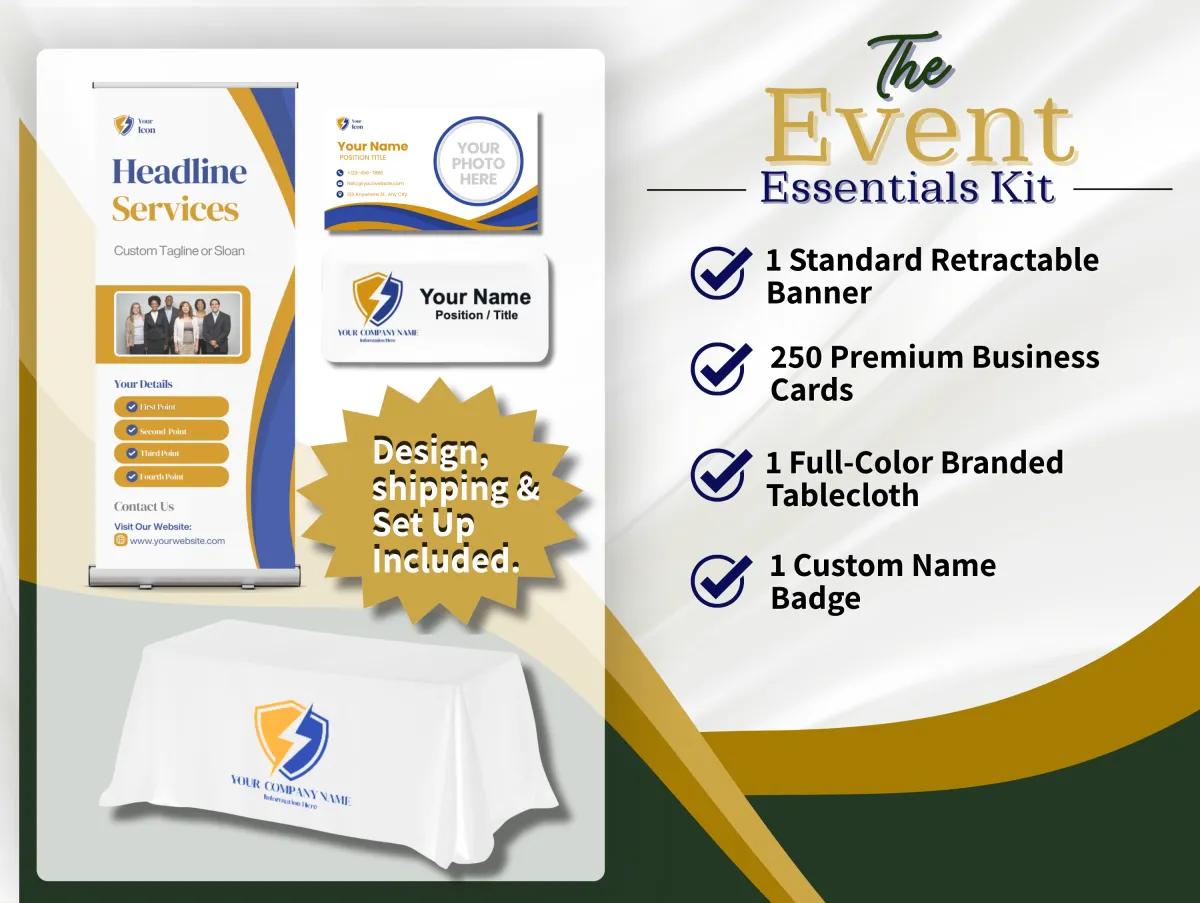 Designed for professionals who want to shine at trade shows, conferences, or community events. This kit equips you with high-impact branded materials that leave a polished and lasting impression.